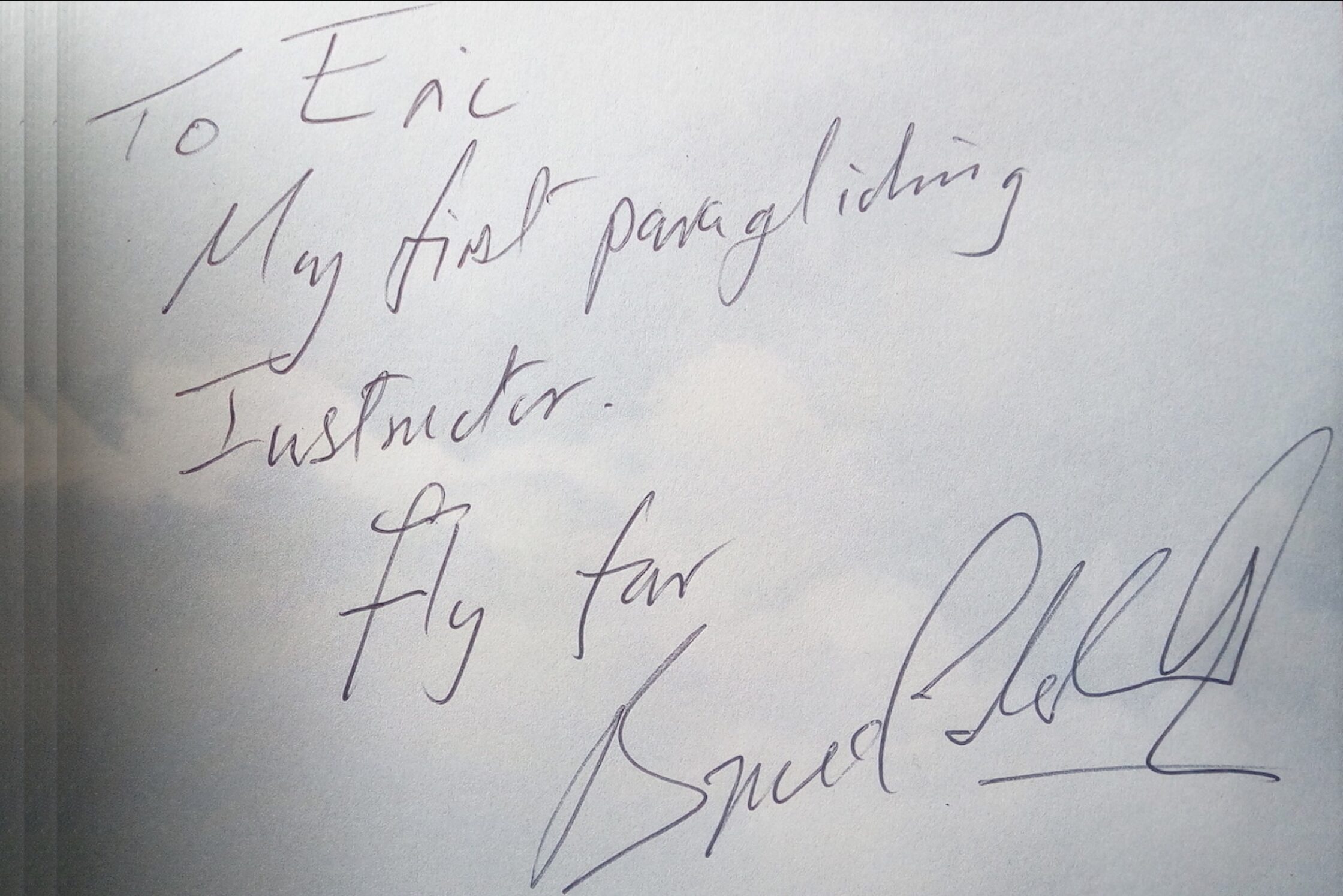 Thank you, Bruce, for your kind dedication “to my first paragliding instructor” on my copy of your book “50 techniques to fly better”!
